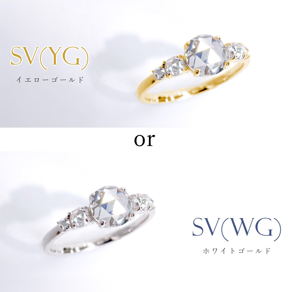 メインストーンの両脇には、同じくローズカットのモアサナイトを贅沢に配置。